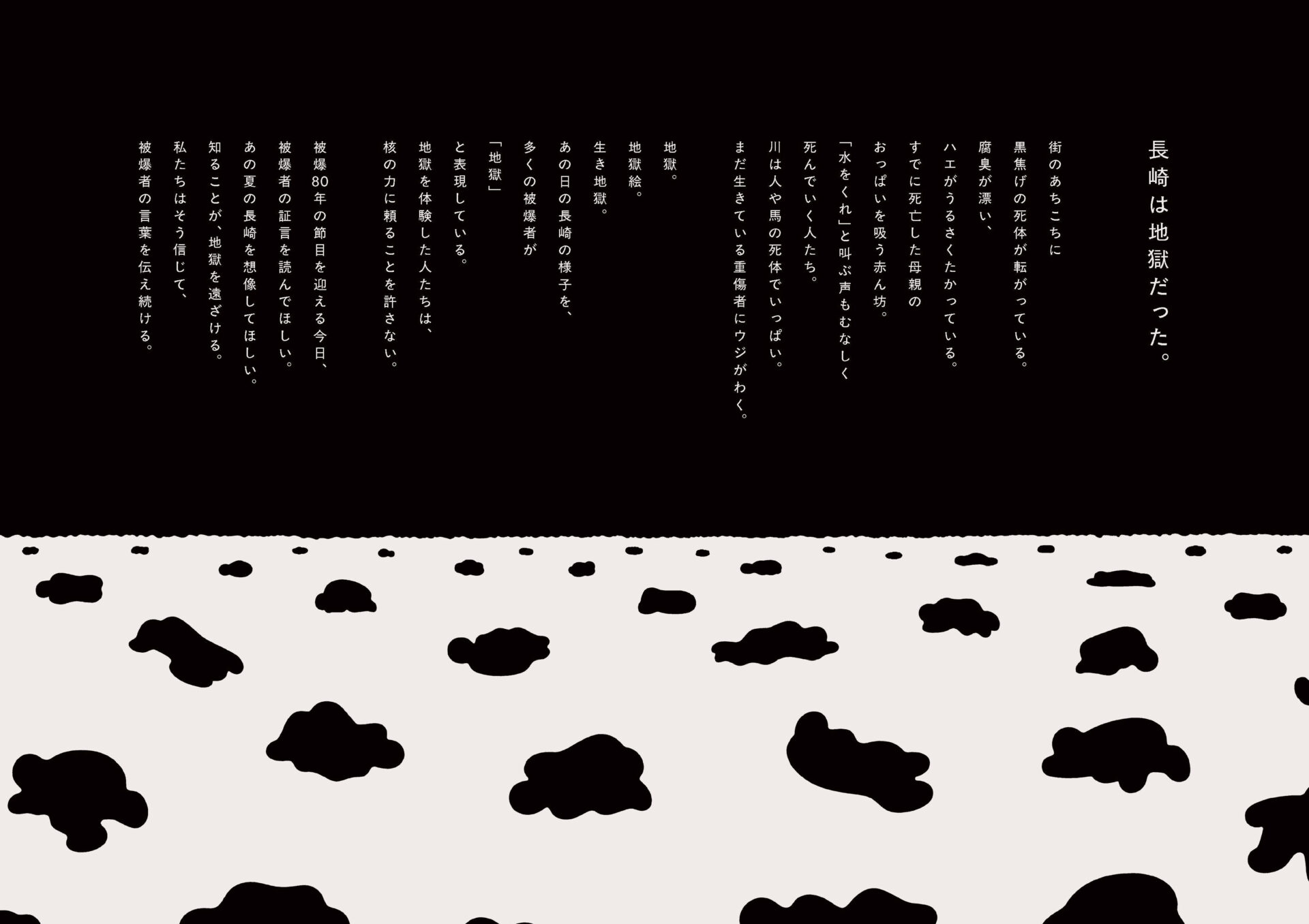 30段広告の裏面となる15段広告では、白黒のシンプルなイラストで無数の黒焦げの遺体が散乱する光景を表現した。そのキャッチフレーズは「長崎は地獄だった。」。