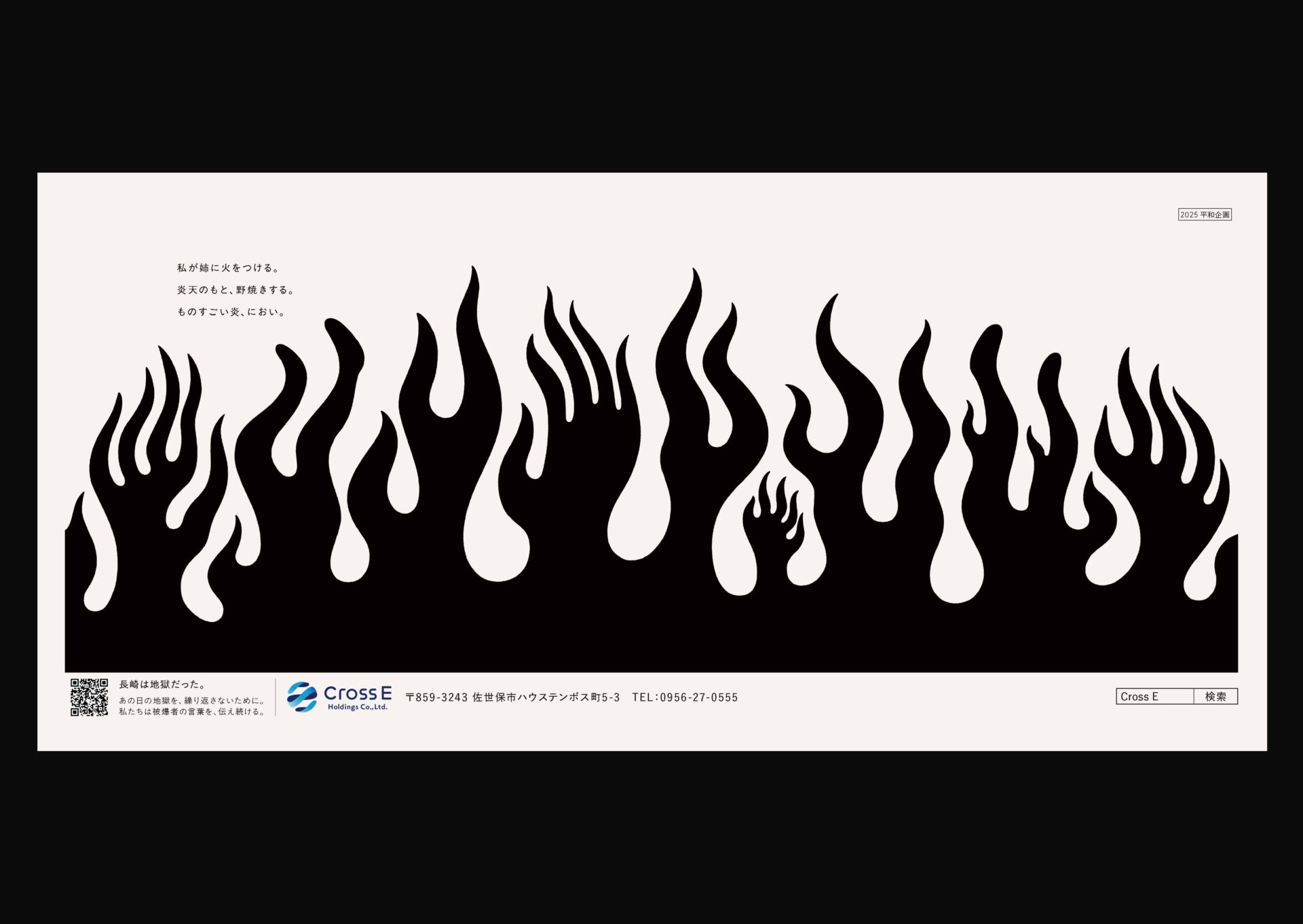 そこに添えられたコピーは「黒焦げで、人とも物ともわからない。」。